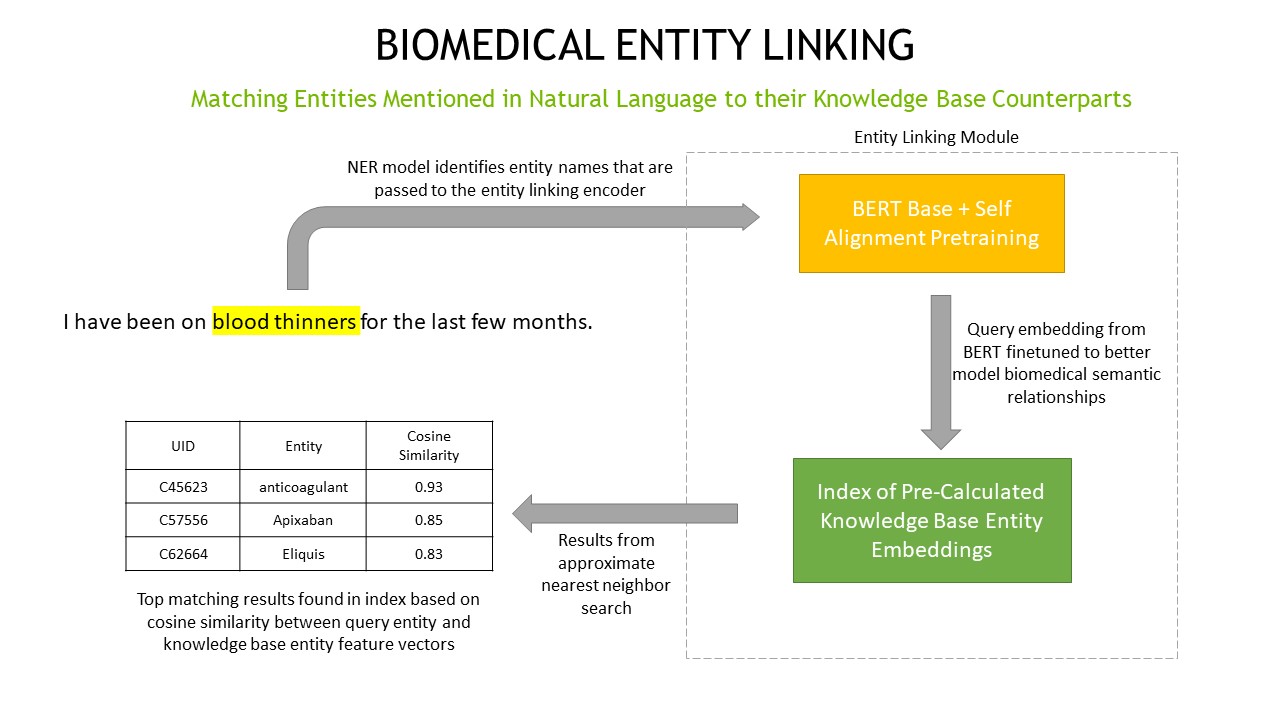 in a knowledge base. For example, an entity linking model might match the phrase blood thinners mentioned in conversation